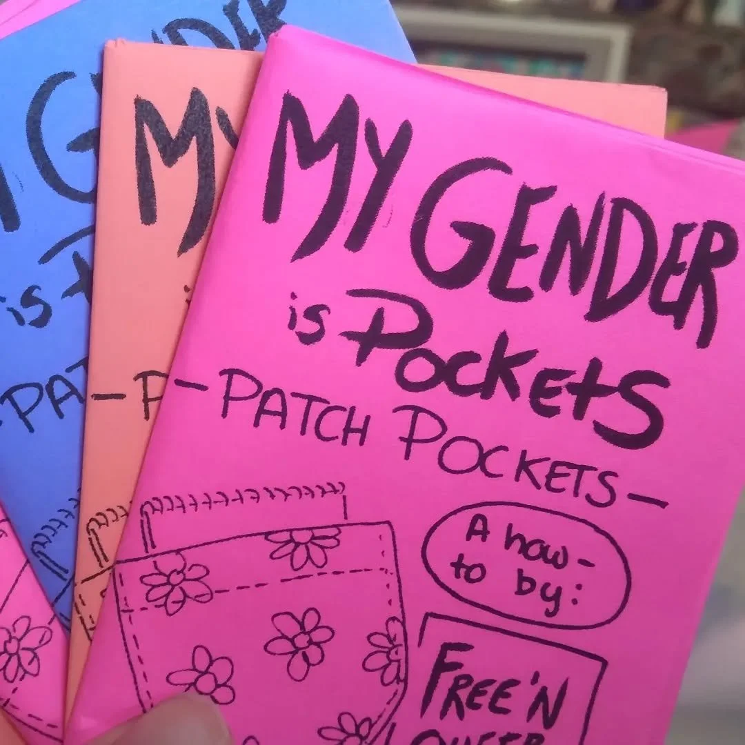 I sell zines, prints, and patches. My zines are from queer creators based in Maryland, with topics ranging from DIY sewing zines to erotica. Our patches are all linocut designs meant for battle jackets. DM on Instagram for zine trades!