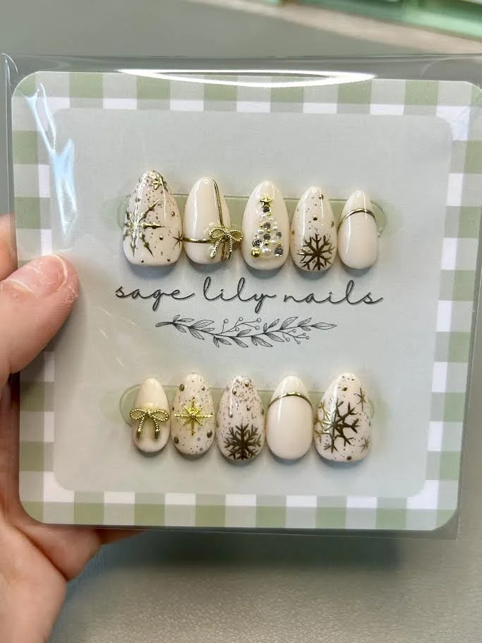Sage Lily Nails is a small, independent nail brand specializing in handcrafted, reusable press-on nails. Products to be sold include ready-to-buy nail sets, custom sizing kits, nail application tools (adhesive tabs, glue, files, etc.), and seasonal or themed collections.